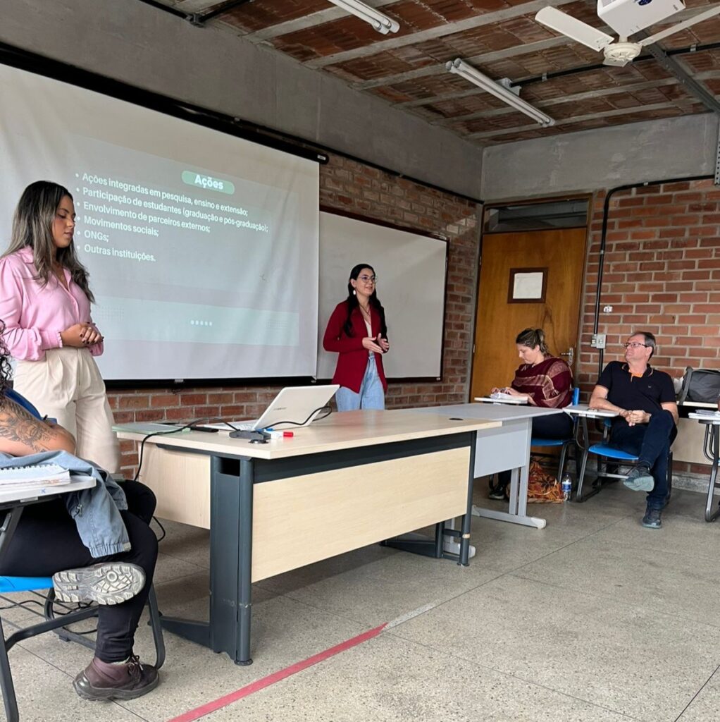 As mestrandas do PPCIAM, Aparecida Lima e Gisely Silva, apresentaram as ações do Núcleo Agrofamiliar aos estudantes do Bacharelado em...