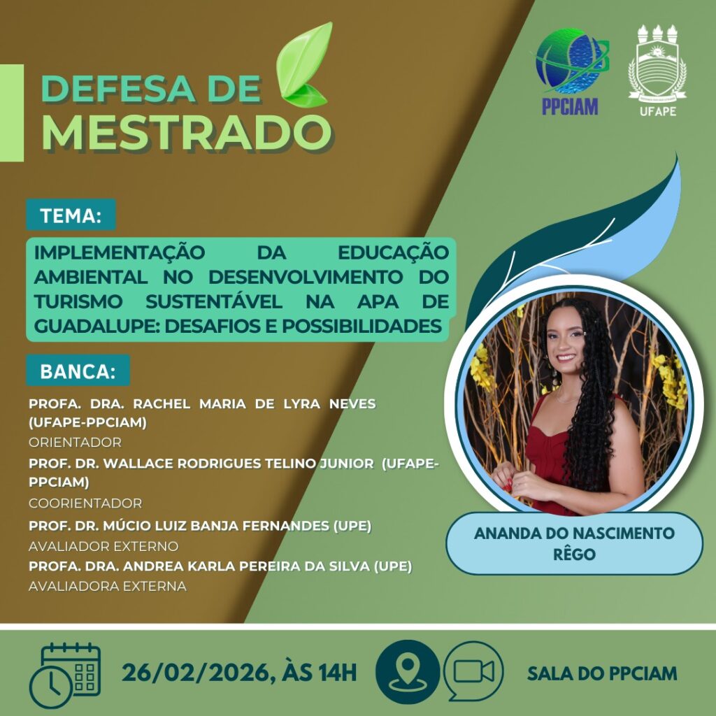 O PPCIAM convida para a defesa pública de dissertação de mestrado da discente Ananda do Nascimento Rêgo TÍTULO: Implementação da...