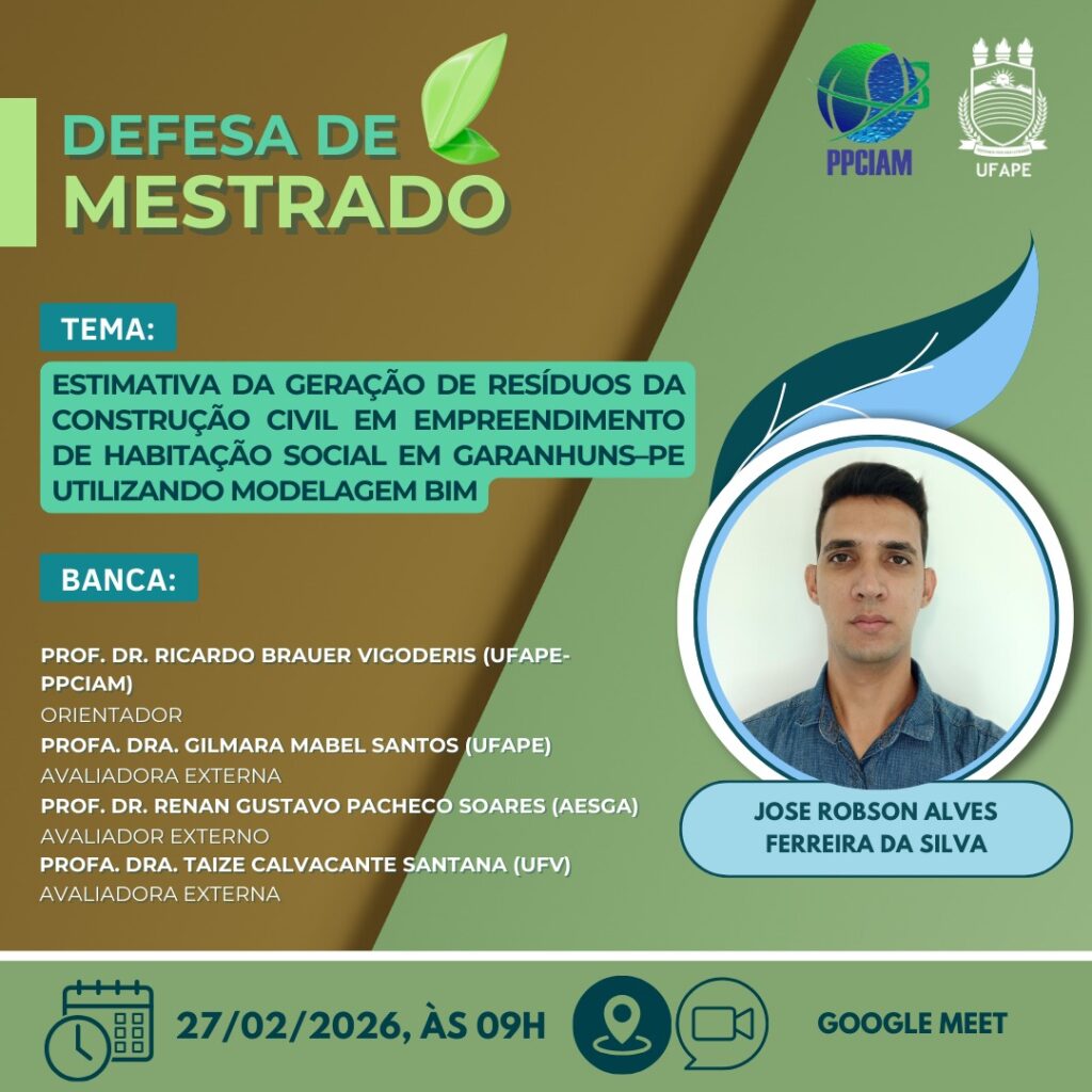 O PPCIAM convida para a defesa pública de dissertação de mestrado do discente Jose Robson Alves Ferreira da Silva TÍTULO:...